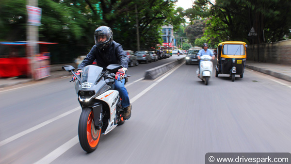 கேடிஎம் ஆர்சி 390 பைக்கில் வீலிங் செய்வது சற்று திணறலான விஷயம். ஆனால், மந்த்ரா ரேஸிங் நிறுவனத்தின் ஸ்டேஜ் 1 இசியூ சாதனத்தின் மூலமாக முதல் மூன்று கியர்களில் சிறப்பான பவர் டெலிவிரி இருப்பதால், முன் சக்கரம் மிக இலகுவாக இருப்பதால், வீலிங் செய்வதற்கும் எளிதான காரியமாகிறது.