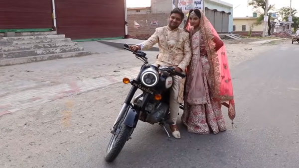 மிகவும் சிம்பிளாக செய்யப்பட்ட திருமணத்தை காட்சிப்பதிவு செய்த ஃபோட்டோகிராஃபர்கள், இளம் தம்பதியனர்கள் பைக்கில் பயணிதவாறு வீடு திரும்பியதையும் காட்சிப்பதிவு செய்தனர்.