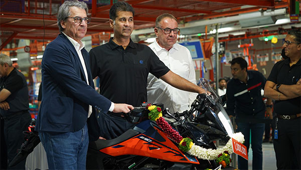 கேடிஎம் நிறுவனத்தின் 10 லட்சமாவது பைக்குடன் பஜாஜ் நிறுவனத்தின் சிஇஓ ராஜீவ் பஜாஜ், பையரர் மொபிலிட்டி ஏஜி நிறுவனத்தின் சிஇஓ ஸ்டிஃபன் பையரர், கிஸ்கா ஜிஎம்பிஎச் நிறுவனத்தின் சேர்மன் கெரால்டு கிஸ்கா ஆகியோர் புகைப்படம் எடுத்துக்கொண்டனர். கேடிஎம் பிராண்டில் 10 லட்சமாவது பைக்கை பஜாஜ் நிறுவனம் தயாரித்துள்ளது. இந்த 10 லட்சம் என்பது முதல் 5 லட்சம் தயாரிக்கத் தேவையான நேரத்தில் பாதியை விடக் குறைவான நேரத்தில் இரண்டாம் 5 லட்சம் பைக் தயாராகிறது.