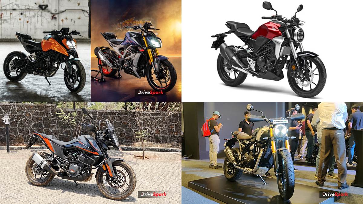 ஹோண்டா சிபி 300ஆர் (Honda CB300R): கேடிஎம் 250 ட்யூக்கைக் காட்டிலும் சற்று காஸ்ட்லியான பைக்கான இது இருக்கின்றது. இதன் விலை ரூ. 2.40 லட்சம் ஆகும். இந்த பைக்கில் பயன்படுத்தப்பட்டு இருக்கும் எஞ்ஜின் அதிகபட்சமாக 31 எச்பி வரை வெளியேற்றும். இந்த பைக்கின் ஒட்டுமொத்த எடை 146 கிலோ ஆகும்.