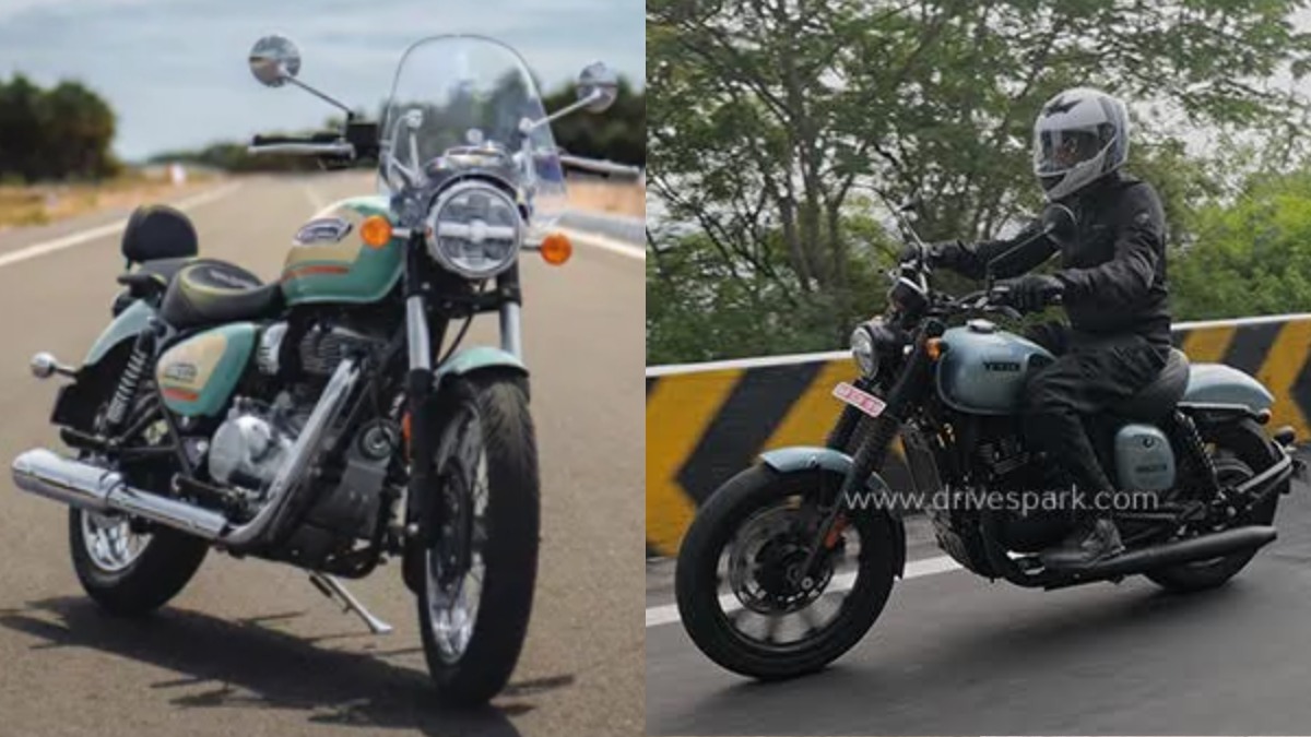 ராயல் என்ஃபீல்டு மீட்டியோர் 350 Vs யெஸ்டி ரோட்ஸ்டர்: ராயல் என்ஃபீல்டு மீட்டியோர் 350 பைக்கின் ஆரம்ப விலை ரூ.1.91 லட்சம். இது யெஸ்டி ரோட்ஸ்டரின் ரூ.1.94 லட்சம் ஆரம்ப விலையை விட ரூ.4,000 குறைவு ஆகும். இருப்பினும், மீட்டியோர் 350 பைக்கின் எண்ட்ரீ-லெவல் வேரியண்டில் டியூப் டயர்கள் வழங்கப்படும் நிலையில், யெஸ்டி ரோட்ஸ்டரில் டியூப்லெஸ் டயர்கள் வழங்கப்படுவது கூடுதல் நடைமுறை அம்சமாகும்.